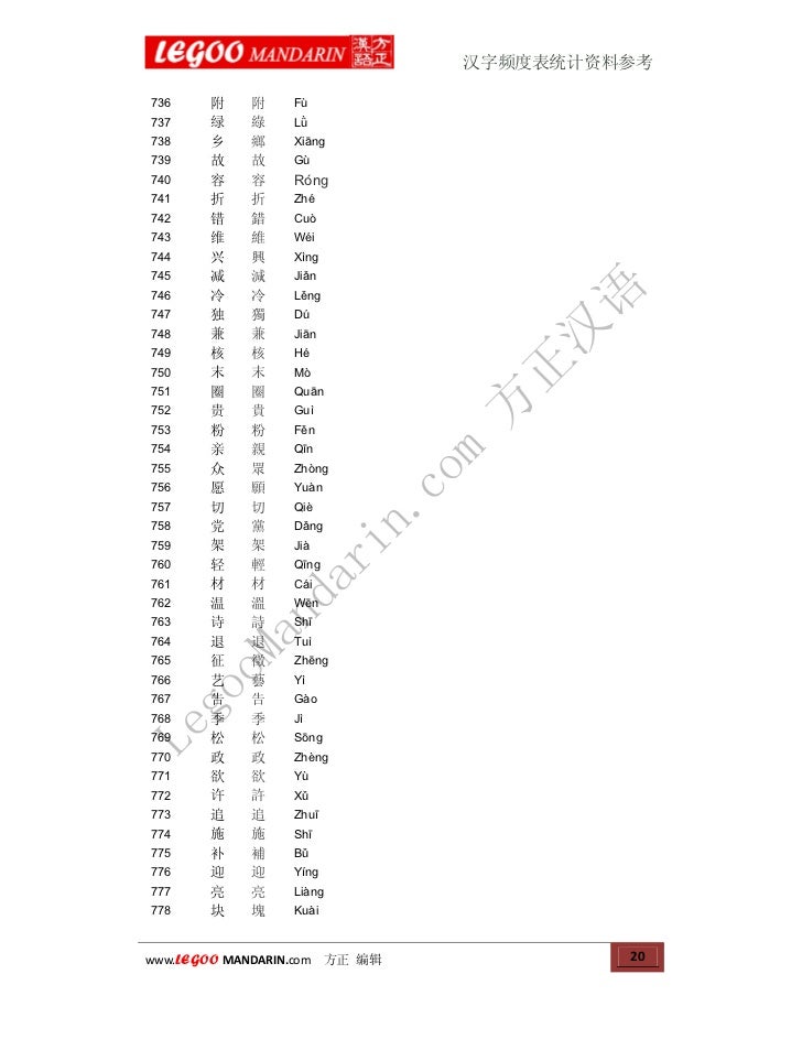 Frequency Of Chinese Characters Usage 汉字使用频率表统计