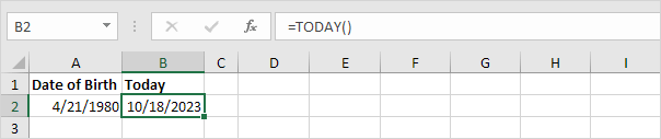 It is updated continuously whenever an Excel worksheet is changed or opened by a user. There's no need to manually enter this inf. TODAY() Today Function Examples Example 1.
